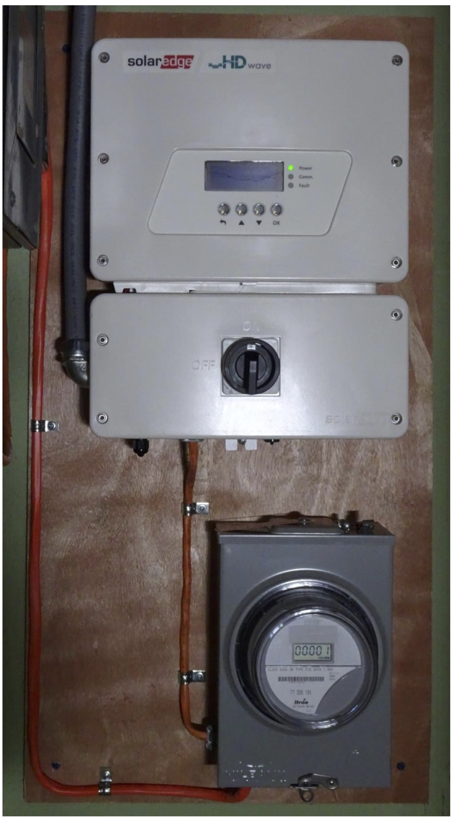 Solar generation is the same on- or off-grid, the sun hitting PV collector panels and making DC electricity. From there, each panel has a power optimizer attached to it that independently maximize the power produced and coordinates with the other panels to keep voltage constant and maximize power production. The electricity is merged into a single line that goes into an inverter. The inverter changes the DC electricity to AC. If you have rechargeable batteries in any form – think power tools or cellphone – you have inverters. This inverter does a bit more, since it also gathers and transmits data regarding the real-time operation of the system and can link to a computer. From the inverter, the AC electricity feeds into an independent meter that tracks generation and then into the service box. The service box is still connected to the meter outside the house. When we use less electricity than we are generating, we are energy producers and the outside meter runs backwards. When we use more electricity than we are generating we are energy consumers and the meter runs forward. Once a year, there is an accounting of the net usage. So some months we are going to be to the good, and some months we will be drawing on that surplus