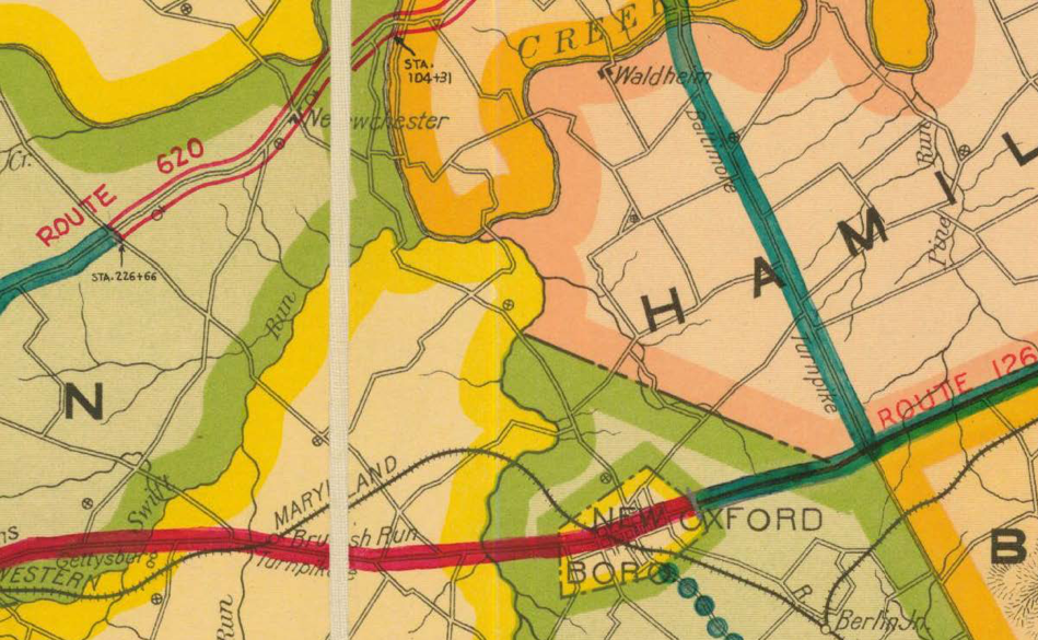 As noted in the MPDF overview, “the full flowering of distinctive agricultural regions in Pennsylvania occurred only in the mid-19thcentury” (McMurry 2012a: 7) and that “the widespread transition to a relatively specialized monocrop or single-product system did not really take hold until after the Second World War in Pennsylvania” (p. 4). Fortunately, this century is well documented in maps, first with county atlases in the 19thcentury, followed by early USGS 15 minute and 7.5 minute topographic maps beginning at the end of the 19thcentury and early 20thcentury, and followed by rather detailed and frequent Department of Highways Type 10 maps beginning in the early 20thcentury and continuing today. It should be axiomatic that earlier roads, and early, improved roads are indicators of principal roadways. Invariably, investments in roads follows need, particularly when through local funding. The dichotomy between earthen and improved roads, whether they are concrete, brick, macadamized, and even bituminous macadamized over chipped stone, can speak to whether the local communities considered any individual road important, or principal. Furthermore, if the history of the Landscape is well known and the peak development of specific agricultural system is marked, then roads improved after that date might not be principal, even if they are within the period of significance.