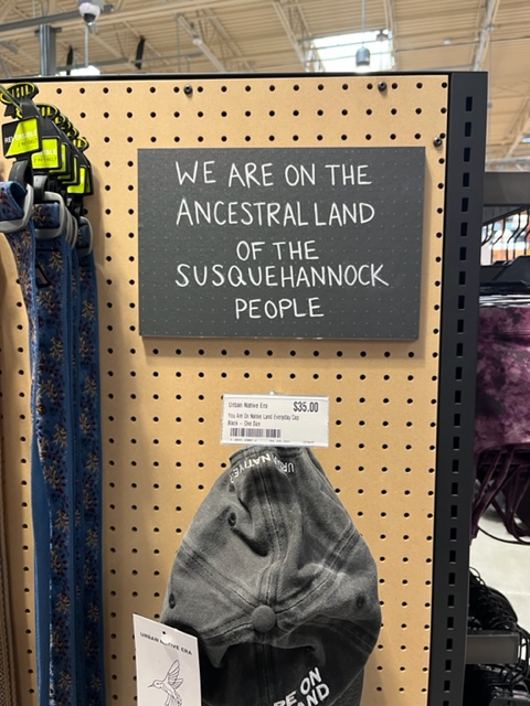 The actual history is much more complicated. And, we haven’t even gotten into pre-Contact Tribes that occupied this area for thousands of years, such as Shenks Ferry or Clemson Island Cultures. What does seem clear is that acknowledging only the Susquehannock Peoples flattens the story to the point where the act of acknowledgment appears incomplete and possibly performative. If this is an effort to start a discussion of the truth of that location, they have just begun to begin. I would invite said company to do more work to enrich the actual history of their store location, and share that story. They could certainly start by reaching out to all 8 Tribes who have already made their Land Acknowledgment. Baby steps can matter.